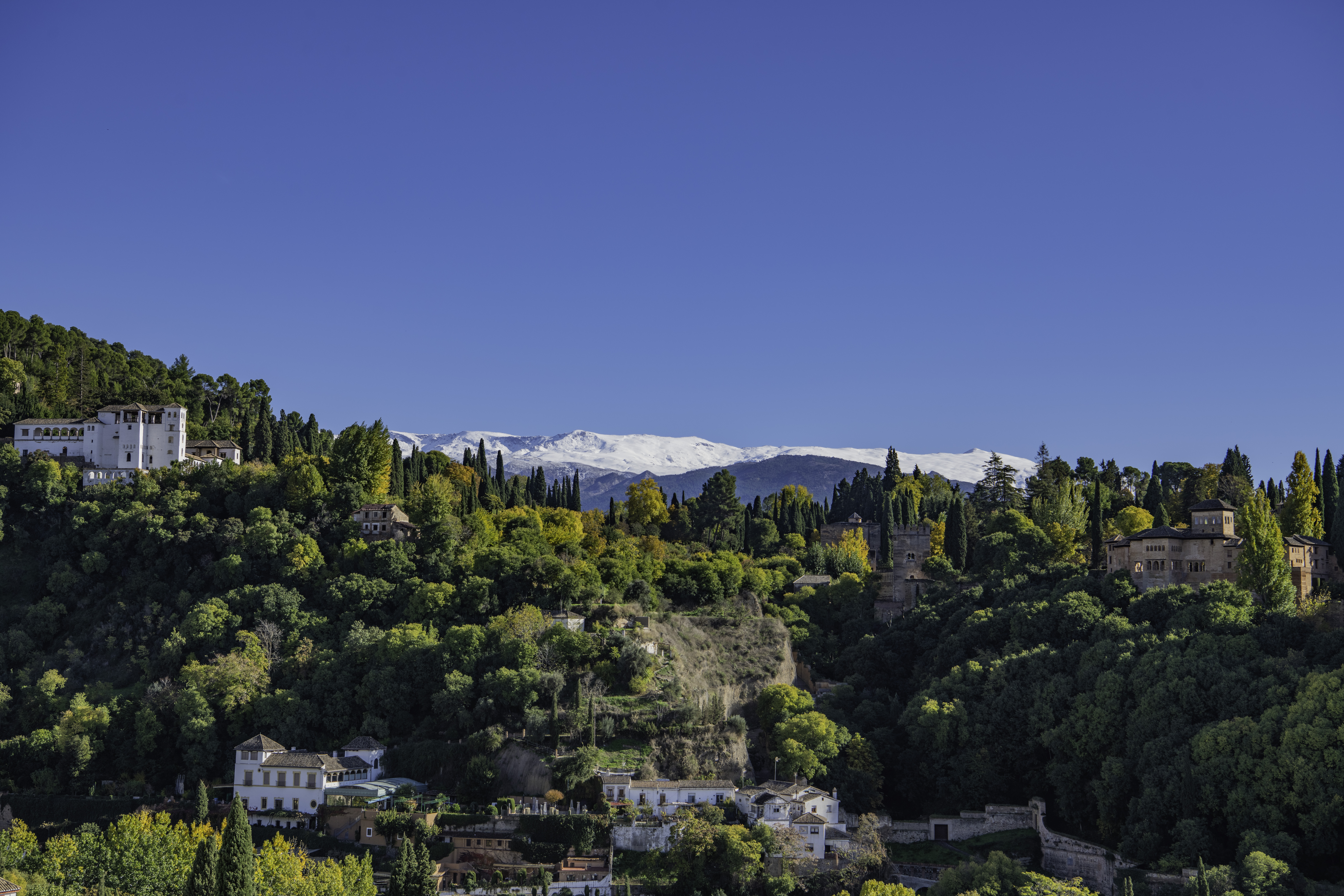 From here you can peek over rooftops and get a clear view of the entire length of the Alhambra .