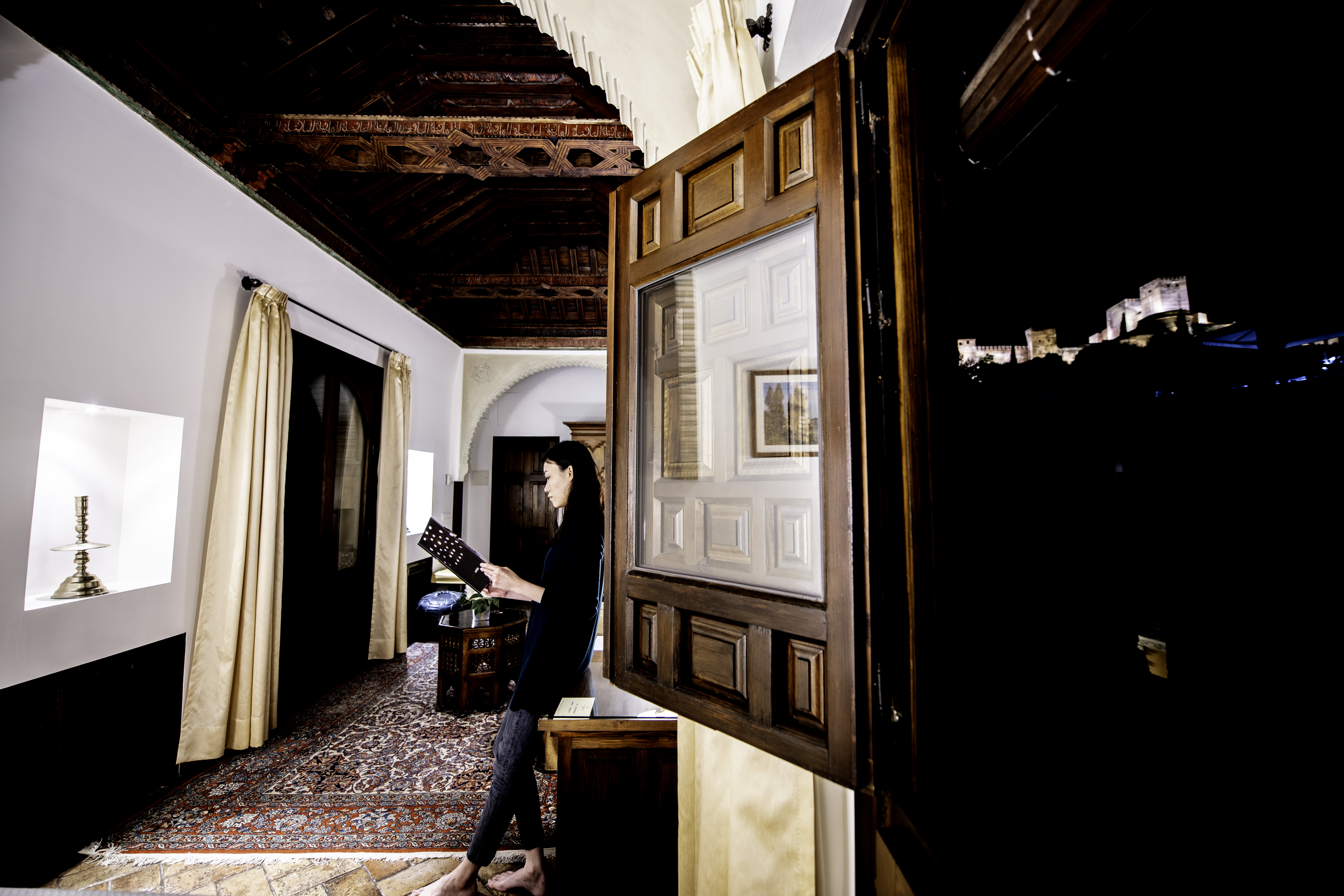 Glancing out through the large windows you can see the Alhambra serenely sitting on the hilly outcrop and lit up, giving it an enchanting look completely different from in the daytime.