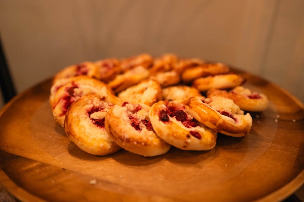 This delightful pastry has a combination of sweet, fruity, and slightly tangy notes. The key component is the soft, yeast-raised dough, which is subtly sweet and has a tender, airy texture. The filling often takes center stage, with variations that can include fruit preserves such as apricot, plum, or strawberry, which provide a burst of fruity sweetness.